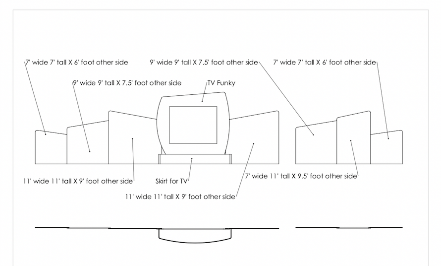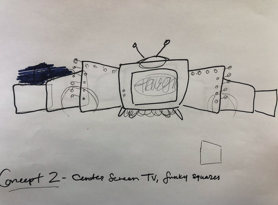 My first sketch of what the True Girl Stage set should look like. Nothing more apt for a Pajama Party themed show than gathering the whole audience around a TV for a movie night!